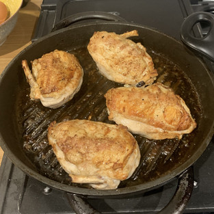 Flip the chicken over and cook for another minute then transfer to the oven and roast for 12-15 minutes or until the chicken is cooked through.